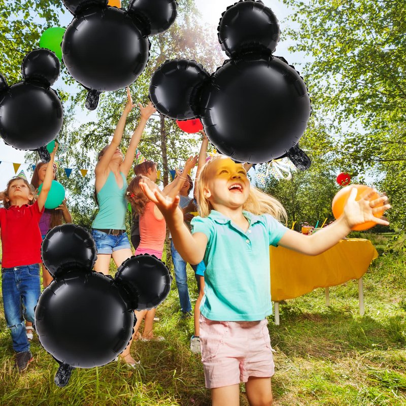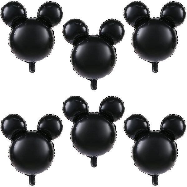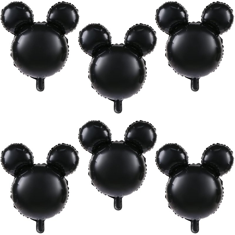 LIYDE 6 Pcs Mouse Head Balloon, 24'' Black Aluminum Foil Balloon for Birthday, Baby Shower Decorations
