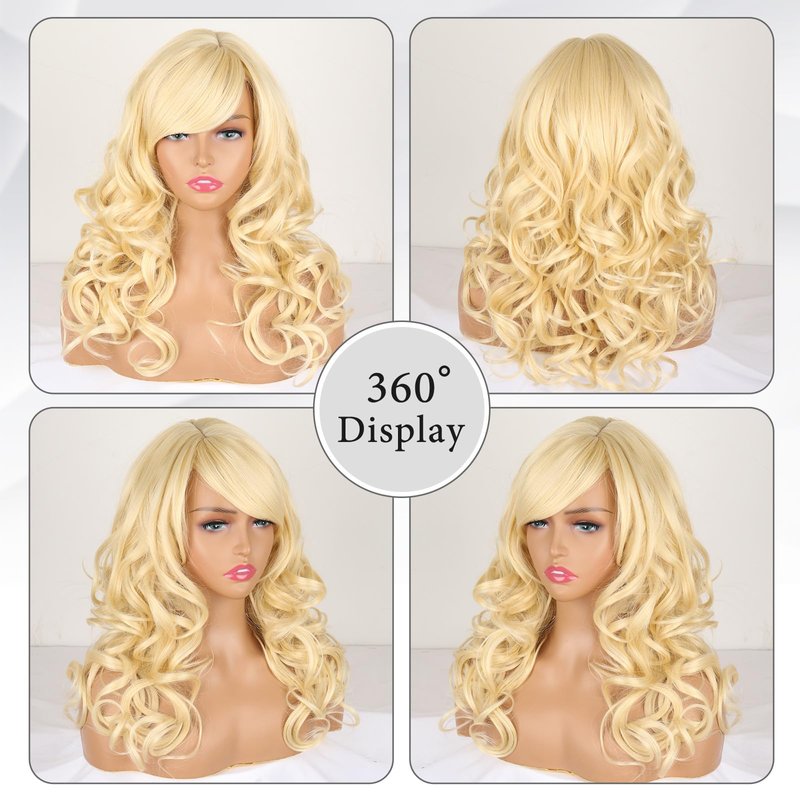 - 🌹🌹【Curly Synthetic Wigs Use Occasions】This curly blonde women wigs help you make a distinctive look on Halloween day, Christmas, St Patrick's Day, cosplay theme parties, weddings, prom, evening out occasions.