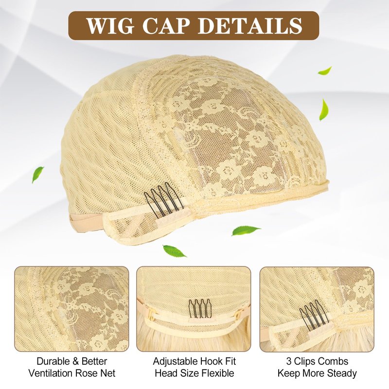 - 💗💗【Blonde Wig with Bangs 】Blonde wigs with bangs for black women, the bangs are soft and can be cut or styled with a hairbrush to create natural hairstyles and make your wig more realistic. Lazy girl approval, beginner friendly, easy to maintain!