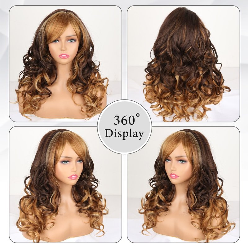 - 🌺🌺【Wavy Blonde Wig Material】Highlight blonde Wig with bangs is made of high-quality heat-resistant synthetic fiber, simulates real scalp, soft and comfortable to wear. Wig Length: About 16 Inches; Wig Weight: About 270g.