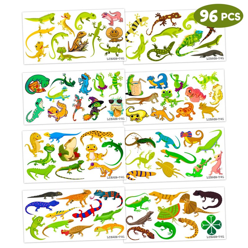 Lizard Temporary Tattoos Themed Birthday Party Supplies Favors Decorations Cute Reptile Swamp Safari Animal 96PCS Tattoos Stickers Funny for Kids Girls Boys Teens School Classroom Rewards Gifts Ideal