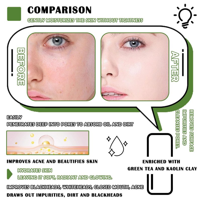 - 🏦【Easy to Use】After cleansing the facial skin, apply the green tea mask on the T-zone of the face or other parts of the face that are prone to oil and leave it on for 15-20 minutes, it can be suitably thick coated, cleaning and moisturizing ability will be stronger.