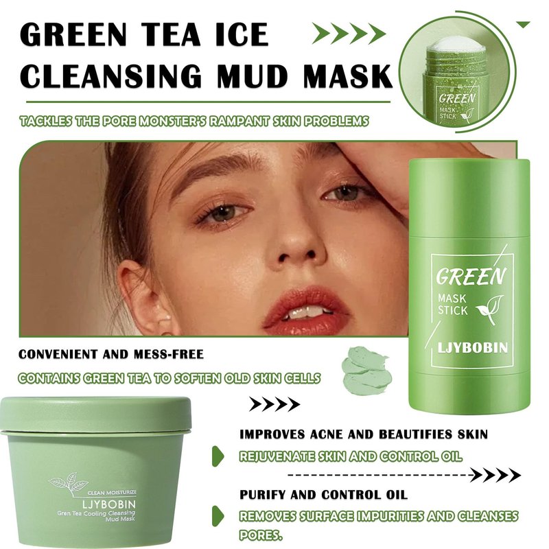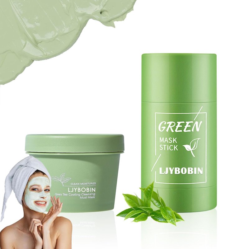 LJYBoBin Green Tea Clay Face Mask + Green Tea Mask Stick Set,Moisturizing Oil Control Green Tea Mask for All Skin Types,Deep Cleansing Mask Stick(2 Pcs)