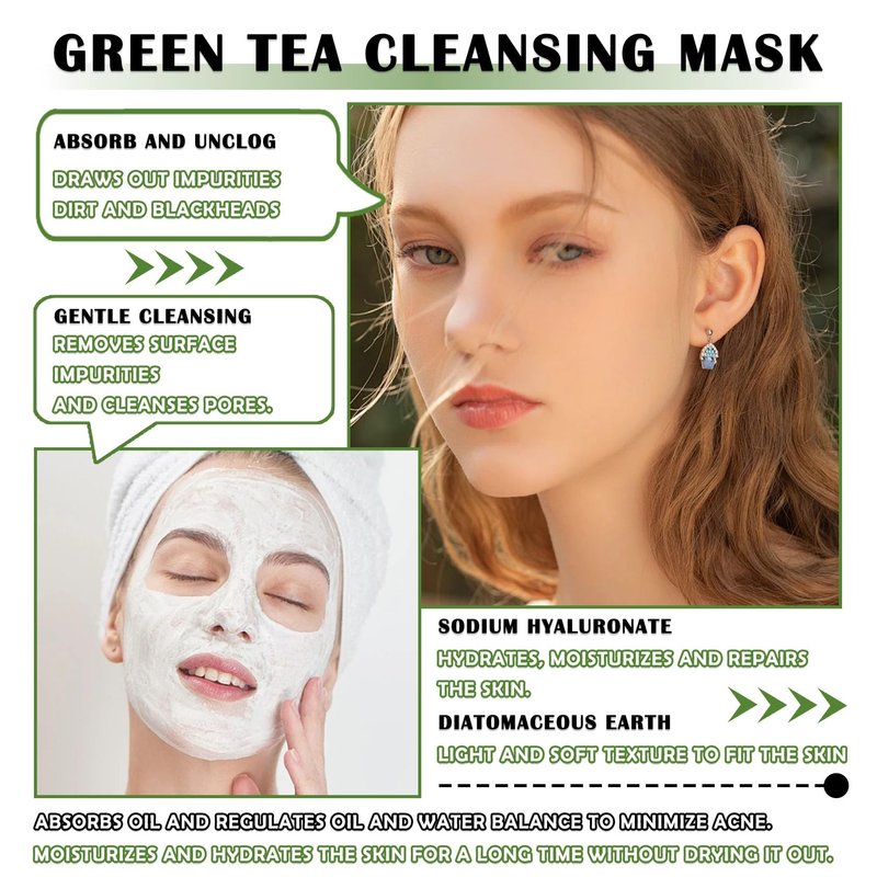 - 🏦【Easy to Apply】Green tea face mask has a creamy texture that is easy to spread, cleansing and moisturizing at the same time, your skin will become more delicate with regular use.