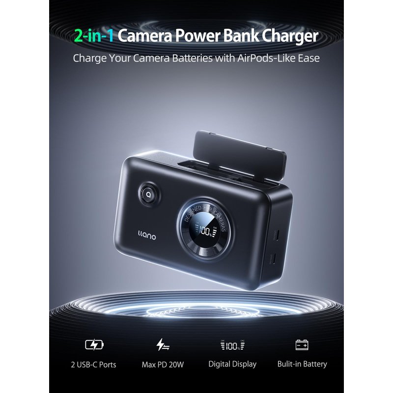 - Next-Gen Power Solution – Built-in 20W Power Bank:Revolutionize your charging experience with the llano LP-E6NH charger’s integrated 20W power bank. This dual-function powerhouse not only charges your Canon camera batteries but also powers up your smartphone, tablet, or other USB-C devices, making it an all-in-one charging solution for photographers and videographers on the go