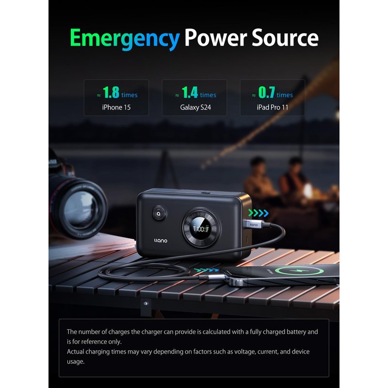 - Compact Yet Powerful – High-Capacity Design:Measuring 5.8 x 3.4 x 2.0 inches, the llano LP-E6NH wireless battery charger delivers exceptional power in a compact form—comparable to carrying a small hardback book. With a 12400mAh capacity, it can fully recharge up to 2.5 LP-E6N batteries on a single charge, ensuring extended power for demanding shoots