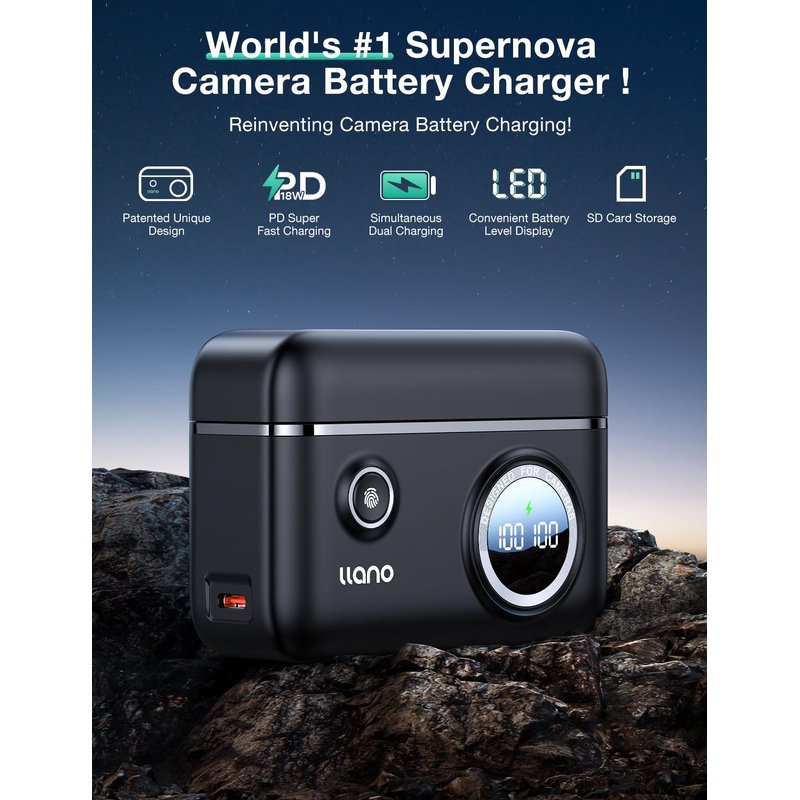 - EFFORTLESS BATTERY MONITORING: Track your battery's status effortlessly with llano npfw50 camera charger's futuristic digital display. With intuitive power visualization, plan your photography sessions with utmost precision and confidence. Perfect for photographers, vloggers, and video shooters.