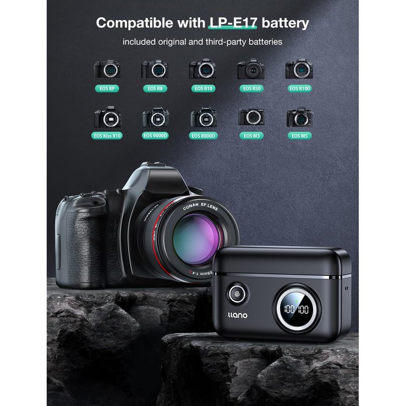 - GUARDIAN OF POWER: Safeguard your LPE17 batteries with llano camera battery charger's multi-layered protection, ensuring longevity and peace of mind in every shot. (Compatible with Canon lp-e17 offical battery and other third-party battery)