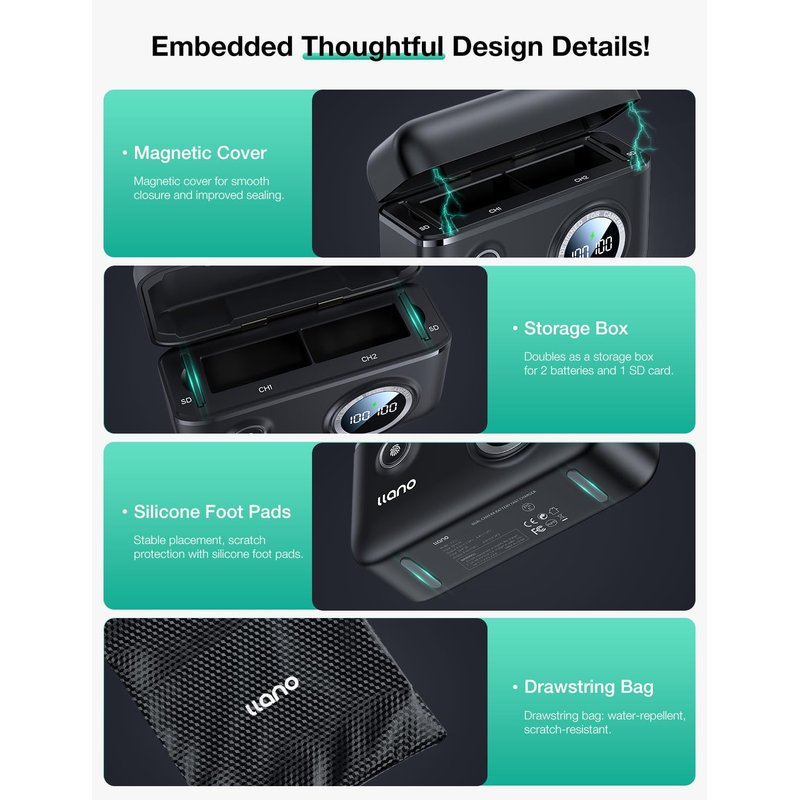 - Real-Time Battery Monitoring with Smart Digital Display: Instantly see battery levels and charging progress with our crystal-clear digital screen. No more guessing—just plug in, read, and shoot. Whether you're a professional filmmaker or hybrid shooter, this intelligent display adds precision to your gear management.