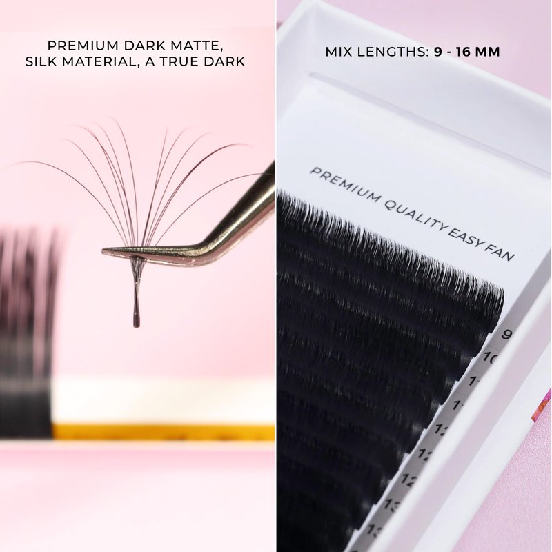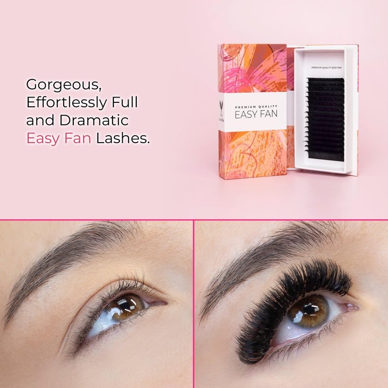 Elevate Your Lash Artistry with LLBA Easy Fan Extensions Achieve expertly crafted volume sets with these premium quality, self-fanning lash extensions. LLBA's meticulous standards ensure consistent, beautiful fans with a super matte black finish. Available in a range of thicknesses, curls, and lengths to perfectly customize your clients' looks. Experience the LLBA difference - lash techs' preferred choice.