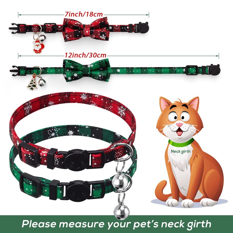 LLHK 4 Pack Christmas Cat Collars with Bow Tie and Bell,Breakaway Kitten Collar for Girl Boy Cats,Adjustable 7-12inch, for Kitty Kitten Adult Cats,Pet Supplies,Stuff,Accessories