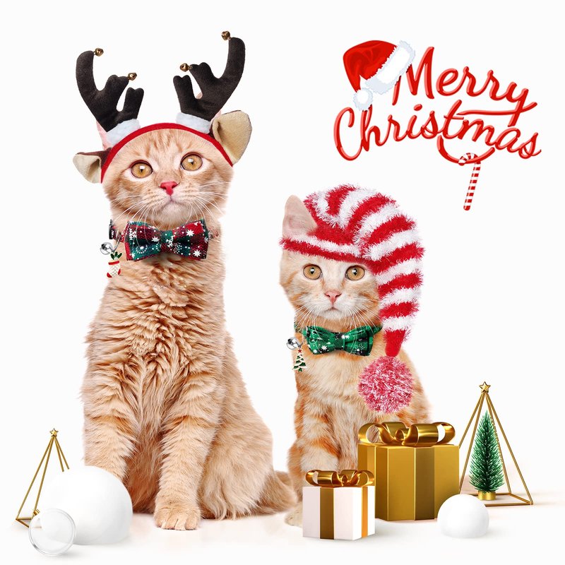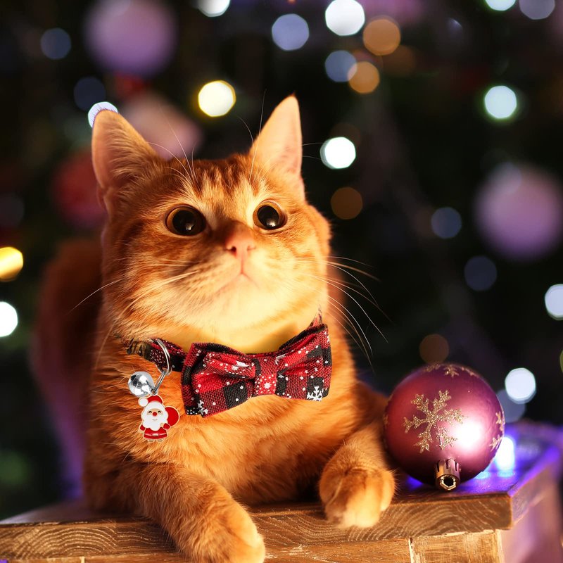 - ð± ãChristmas Festival GiftãChristmas cat bow tie collar with cute bell and Classic lattice,snowflake pattern and Linking.Lovely design will be the best gift for your kitty.