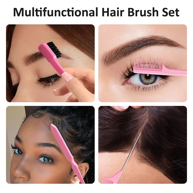 - What you get : You will receive 2 pcs pony tail hair tool 1 pieces of double sided hair edge brush, 1 pieces of 3 row salon teasing brushes, 1 pieces of rat tail combs , 6 pieces of clips and a pack rubber band.