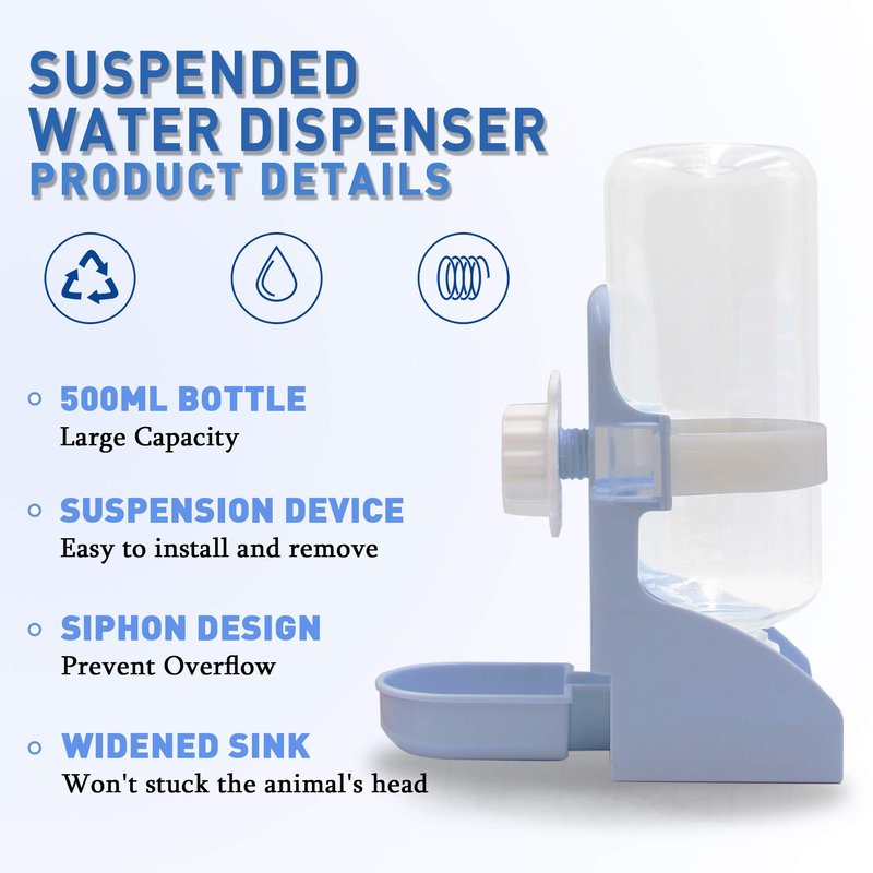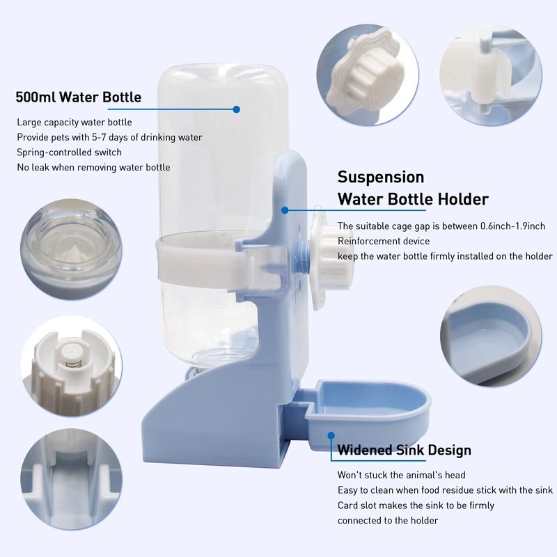 LLSPET Rabbit Water Bottle Suspension Water Dispenser for Mini Pet Bunny Guinea Pig Chinchilla, 500ml Automatic Water Bottle by Gravity Flow Supply, Prevent Overflow, BPA Free (Blue)