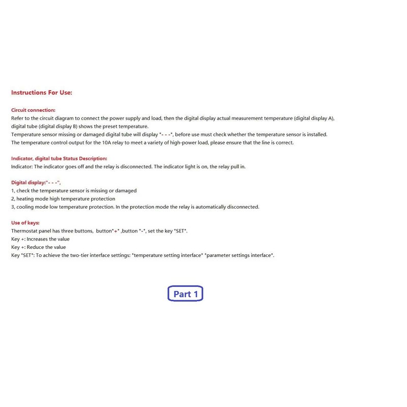 - Measuring input: 1 meter NTC (10K 0.5%) waterproof metal sensors.