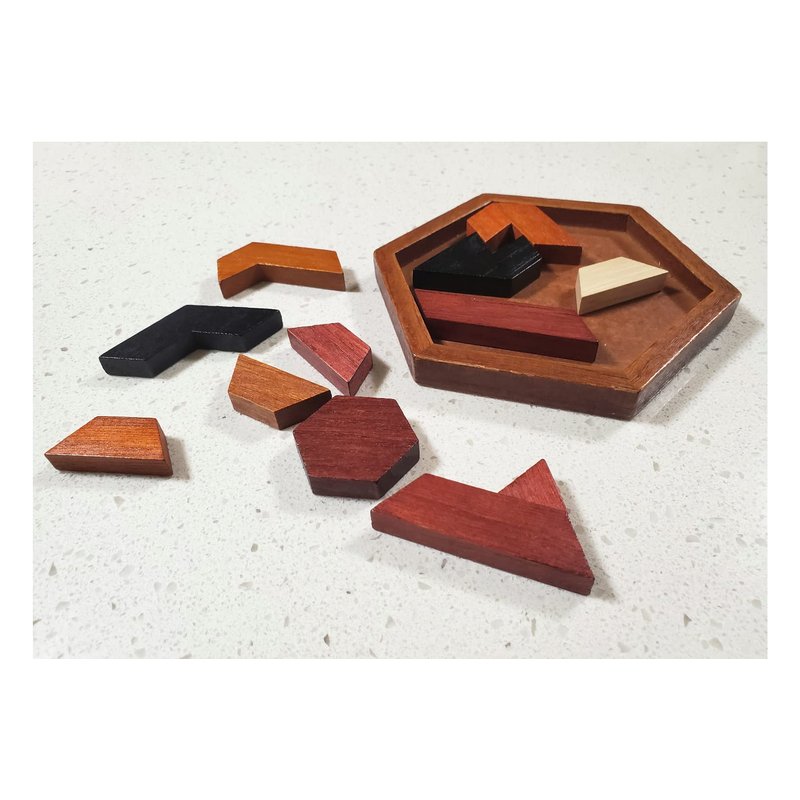 LMC Products Hexagon Wooden Puzzle Toy - Brain Teasers for Kids Ages 10-12. Also Great Brain Teaser Puzzles for Adults