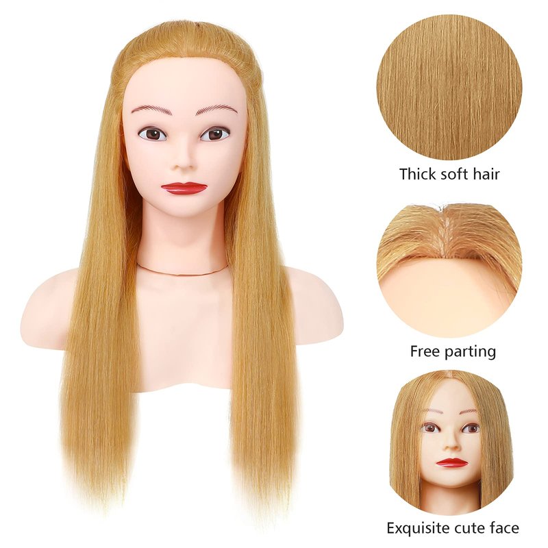 LNASI Mannequin Head 24-26 inch 100% human hair Styling Training Head Cosmetology Manikin Head Doll Head for Hairdresser with Free Clamp strawberry blonde