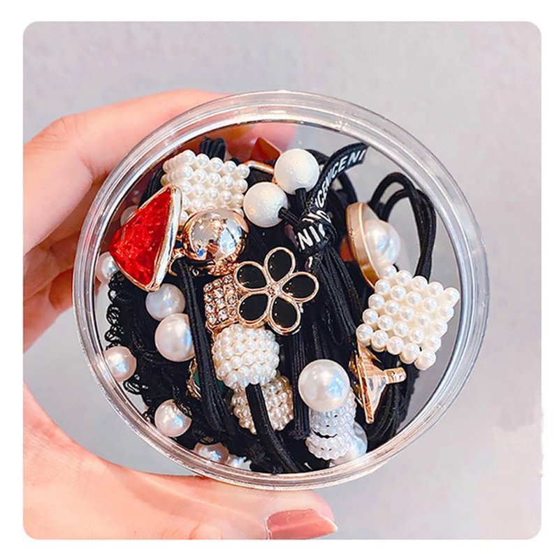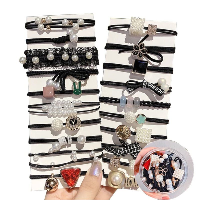 - 【Fashional and Cute Style】 20 PCS Stylish pearls ponytail holders hair rope come in one round container, easy to store and easy to carry. Lucky bow-knot elastic rubber bands for women and girls, classic color are cute and full of youthful vitality, which are suitable for most ages, hairstyles and places, wear them add a different charm.