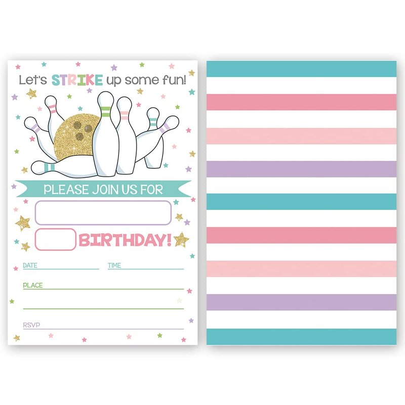 LoaHak Bowling Birthday Invitation, Bowling Invitation, bowling party favors for kids, birthday party invitations. (010)