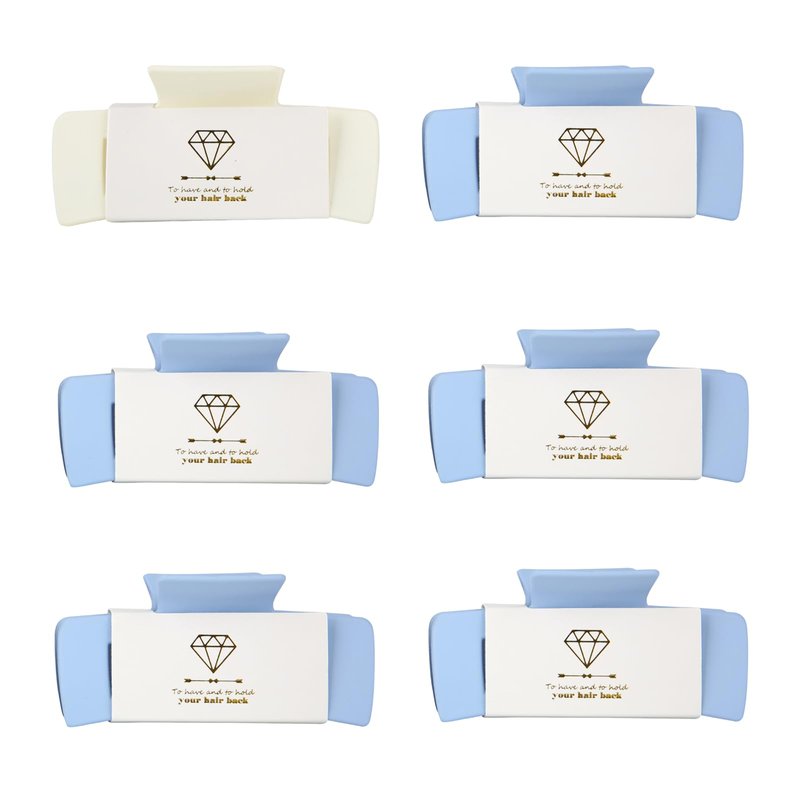 Loanzeg Bridesmaid Hair Claws Bachelorette 4.1 Inch Square Hair Clips Set of 6 Bridal Shower Hair Claw Clips ideas Gift for Wedding Party Favors Bridesmaid Proposal Gifts (White&Dusty Blue)