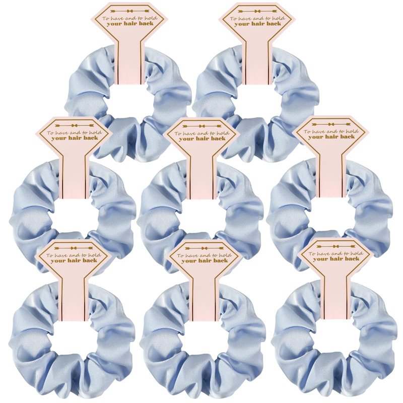 Loanzeg Satin Bridesmaid Scrunchies Bachelorette Hair Ties Set of 8 Bridal Shower No Damage Hairties ideas Gift for Wedding Party Favors Bridesmaid Proposal Gifts (Dusty Blue)