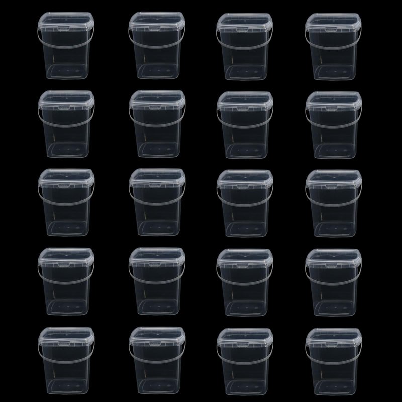 Lobergel 20 Pack 33oz Square Slime Containers with Lids and Handles, 1000ml Clear Transparent Plastic Storage Bucket Container, Cocktail Rum Buckets Reusable Food Storage Containers for Parties