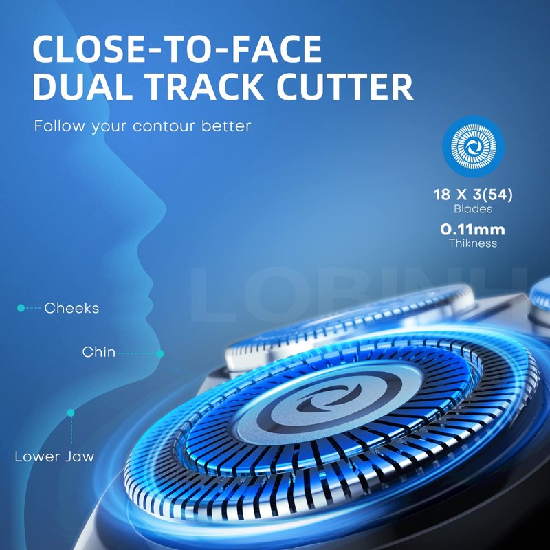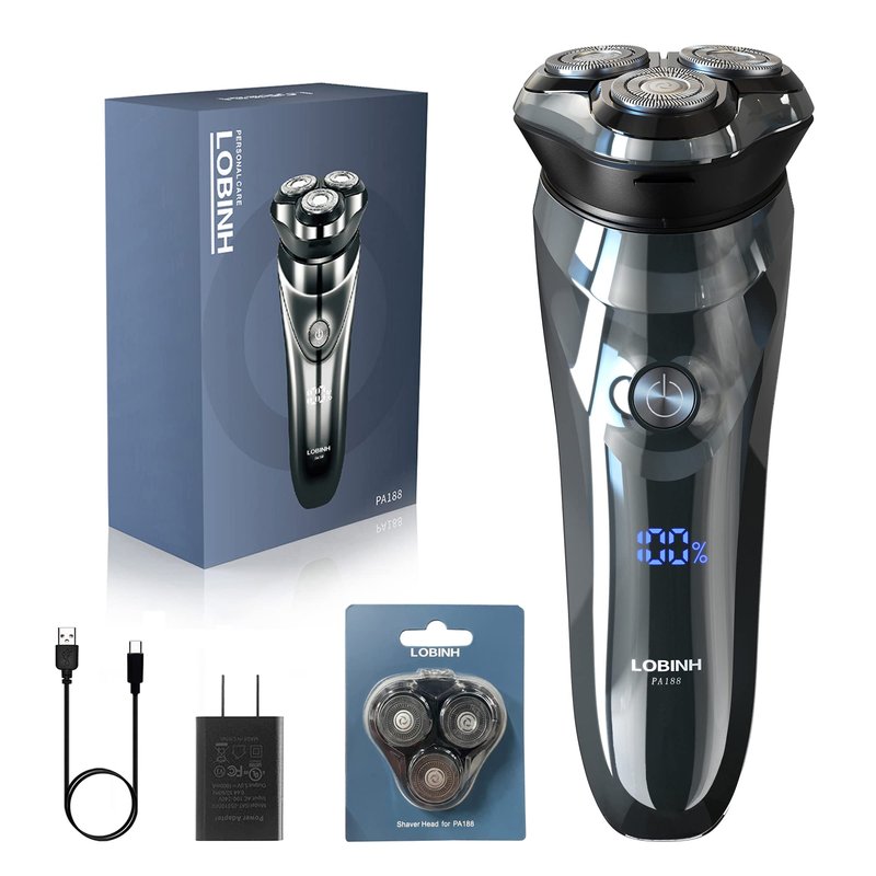 - 【SMOOTH & CLOSE SHAVING】4D floating heads can fit your contour better, and handle every corner including the chin, lower jaw, and cheek. LOBINH PA188 electric razor for men is equipped with powerful motor and premium stainless steel shaving system, self-sharpening blades and close to face double-ring nets ensures excellent shaving speed and effect.