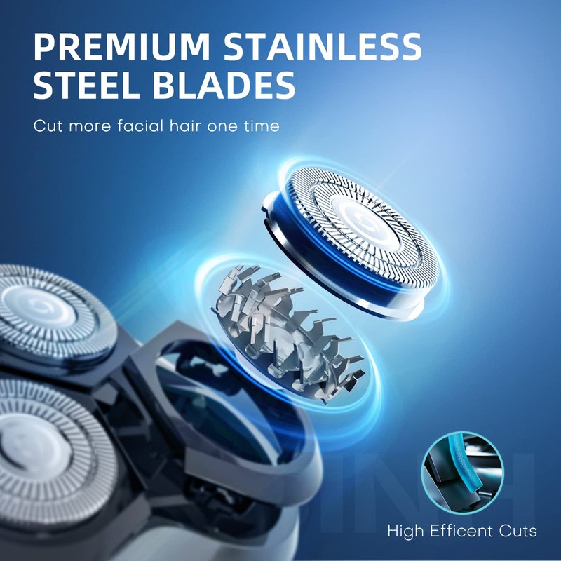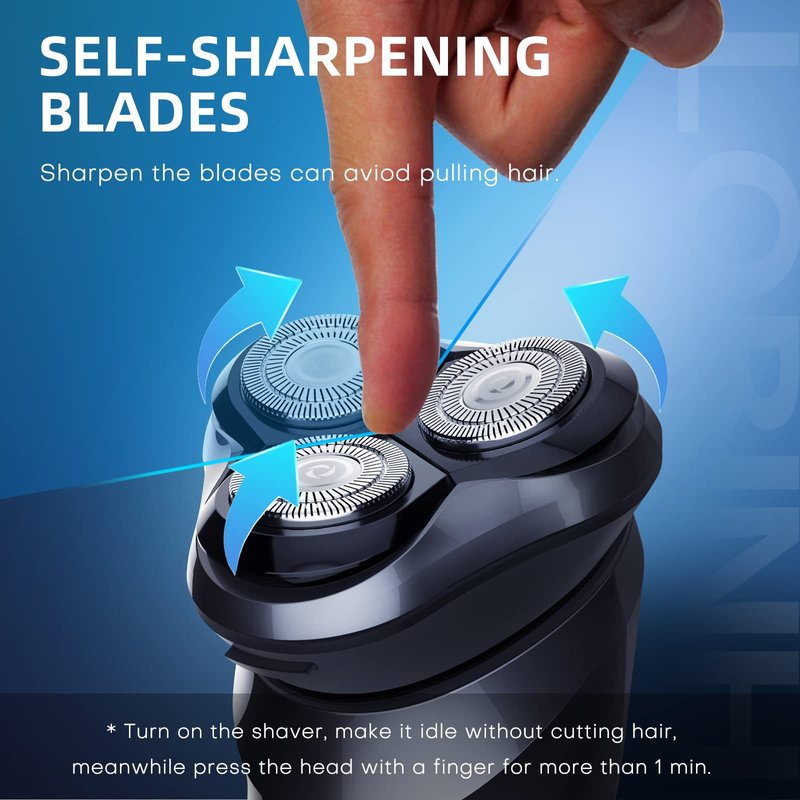 - 【EXTRA REPLACEMENT SHAVER HEAD】Extra replacement shaver head Included. No need to spend additional budget and effort to find a matching electric razor replacement head. Make it idle without cutting hair while pressing the head to sharpen the blades can aviod pulling hair for a smoother shave.