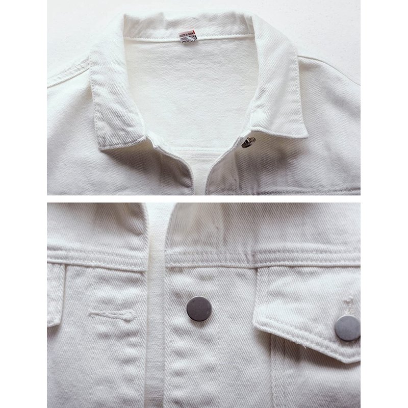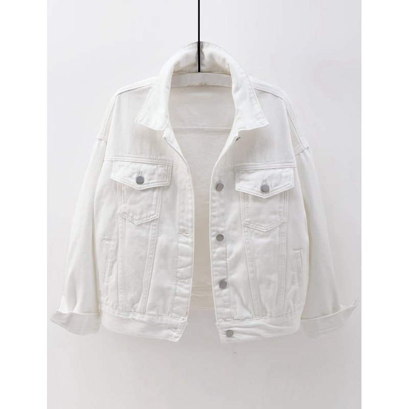 Locachy Women's Casual Denim Jacket Solid Color Basic Long Sleeve Jean Jacket Coat White M