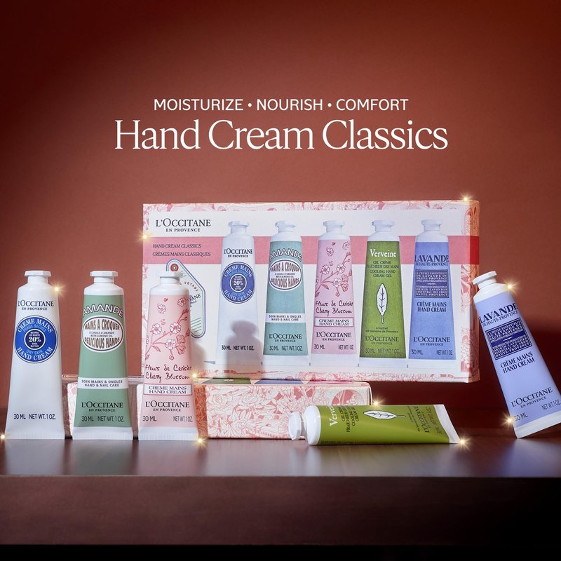 L'OCCITANE 5-Piece Nourishing & Protective Classic Hand Cream Holiday Set: Gift the Best Moisturizing Hand Creams Including Almond, Shea Butter, Lavender, Verbena and Cherry Blossom