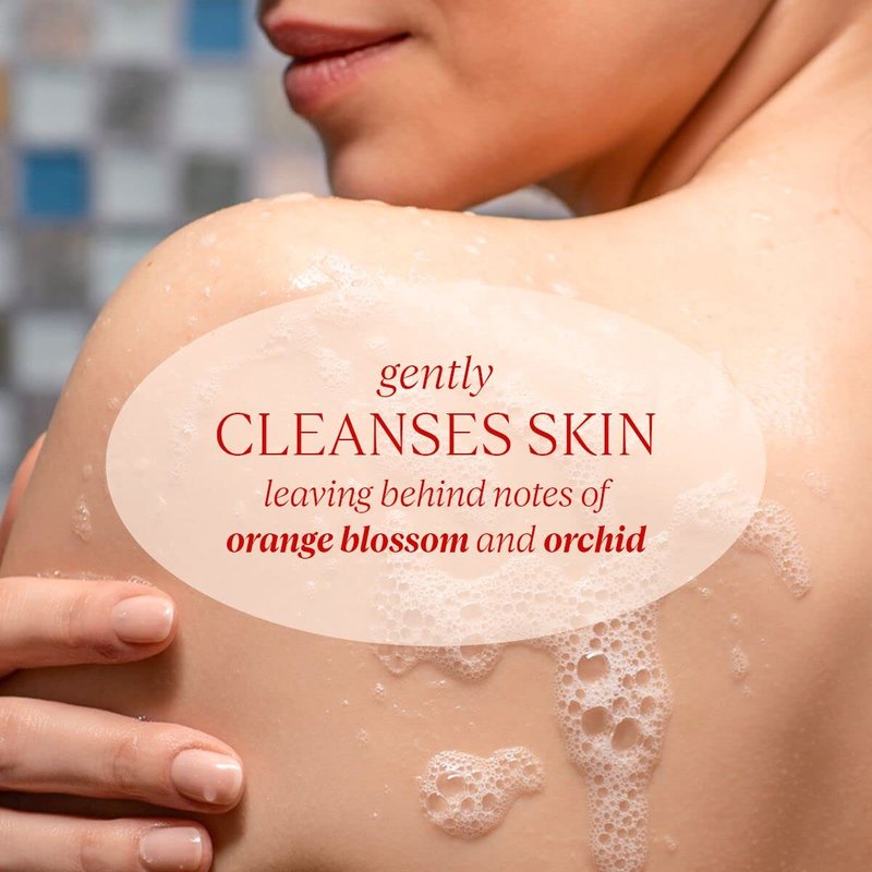- A shower gel illustrating the timeless encounter between orange blossom and white orchid to gently cleanse the skin.