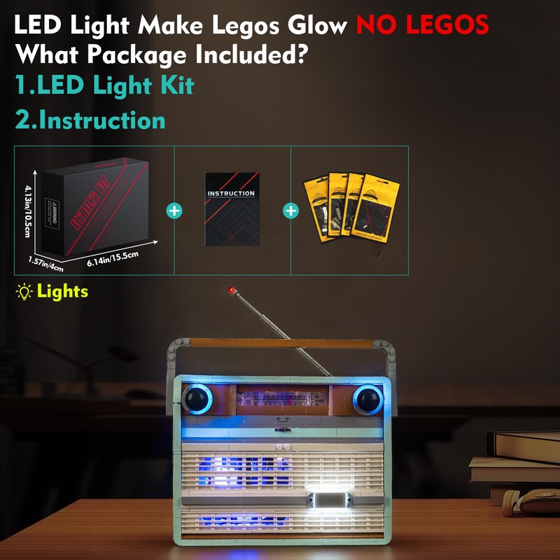 - 【LIGHT YOUR BUILDING SET】Light up all corners of the model with gleam, intense lights, you can see the vivid details inside and outside, Compatible with LEGO 10334 Retro Radio. A special arrangement for gifts/collections