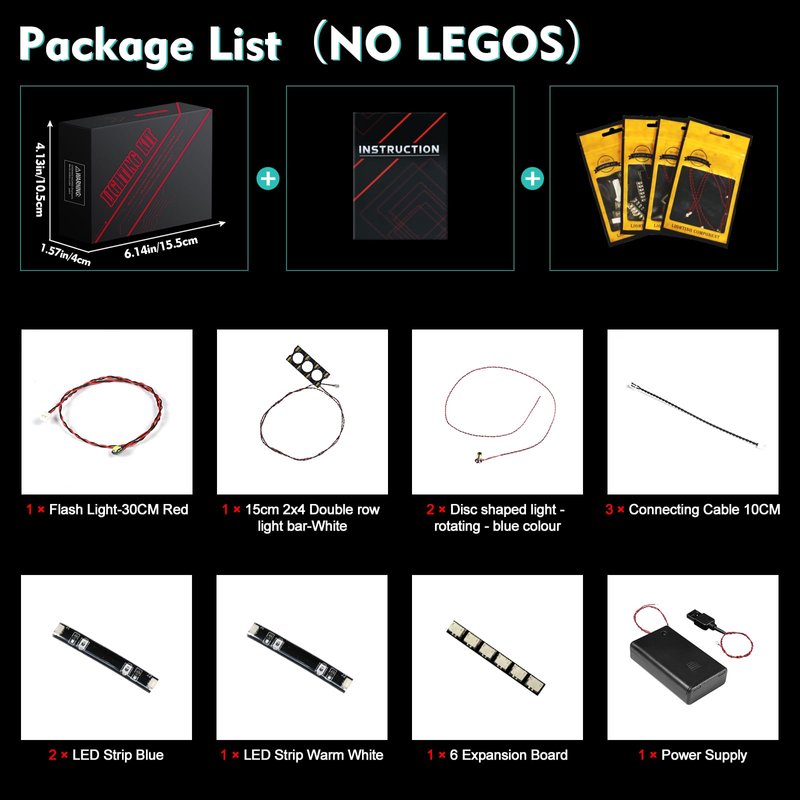 - 【MULTIPLE PLAY】 Light kit Compatible with LEGO can be powered by USB (Voltage less than 5V). The lights will be brighter when powered by USB. Please test each light part before assembling.