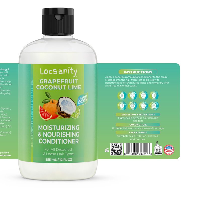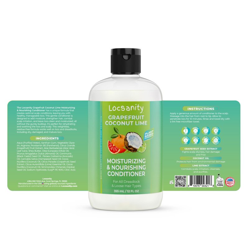 Coconut, Lime, Grapefruit, Vitamins, and Plant Extracts all blended together. A unique formula that will detoxify and optimize scalp conditions for healthy, manageable locs with this gentle conditioner designed to add moisture to locs, strengthen hair, nourish scalp, prevent buildup and leave your locs clean and moisturized. All natural oils and natural plant extracts blended together to condition your dreadlocks without buildup. A unique blend of moisture balancing and soothing natural ingredients makes this the perfect conditioner for dreadlocks. Grapefruit Seed - Encourage healthy hair growth increased vitality. Coconut Oil -Stimulates hair growth getting deep into its follicles. Lime - Antioxidant and disinfectant For Dry, Damaged, and Mature Dreadlocks. Bring sanity to your loc care regimen Handmade in Sunny South Florida. All naturally derived ingredients. No Build up, No Parabens, No Phthalates, No Mineral Oi, No DEA, No Petroleum, No Formaldehyde. Never Tested on Animals. After hair has been shampooed, apply a generous amount of conditioner on scalp, then work conditioner into dreadlocks, from roots to tips. Squeeze dreadlocks to help remove any debris or buildup. Thoroughly Rinse while squeezing dreadlocks.