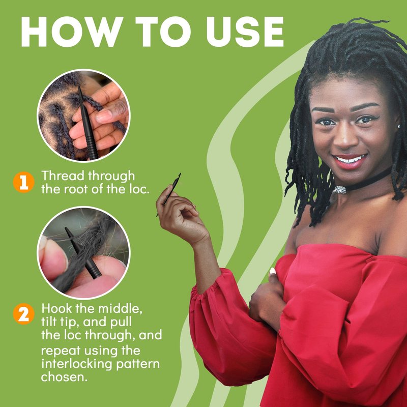 - Make Locs Faster, Tighter - Say goodbye to the hassle of switching between tools when working with various loc sizes! Our interlocking tool for locs is dual ended: the small end can be used for smaller locs (microlocks, sisterlocks) and the medium end can be used for larger locs. For even more versatility, our tool also features a fine tip that can be used to cleanly part hair!