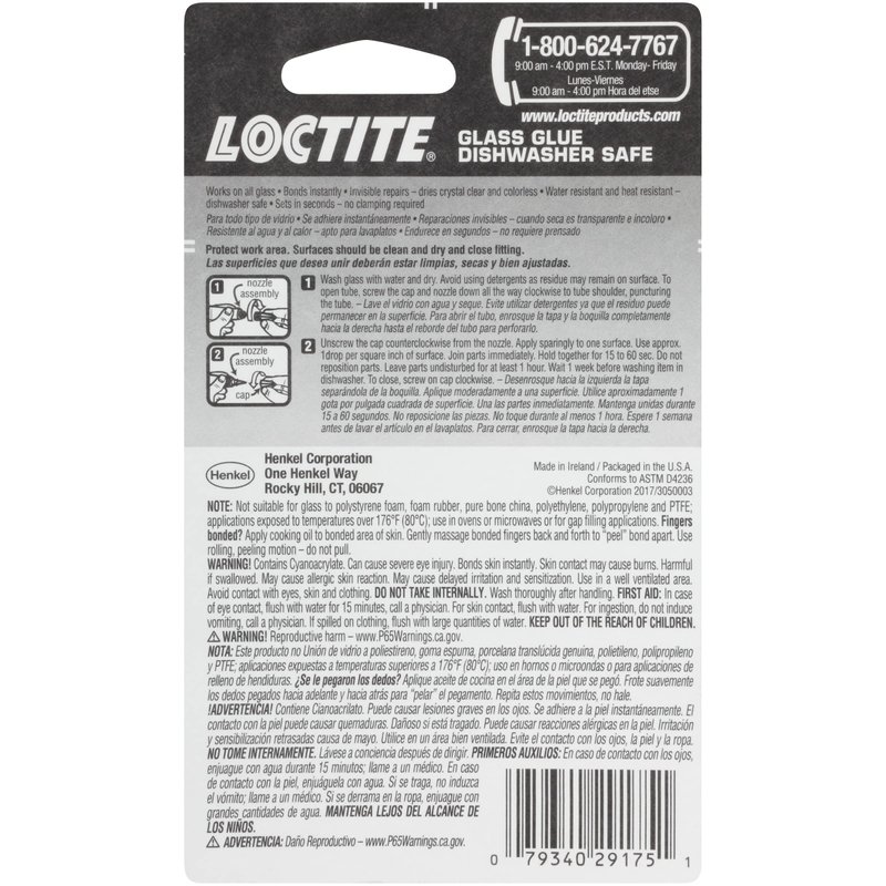 Loctite Glass Glue, Dishwasher Safe, Dries Clear & Fast Bonding, Works on Tinted Glass, Plastic & Metals - 0.07 Oz Tube, 1 Pack