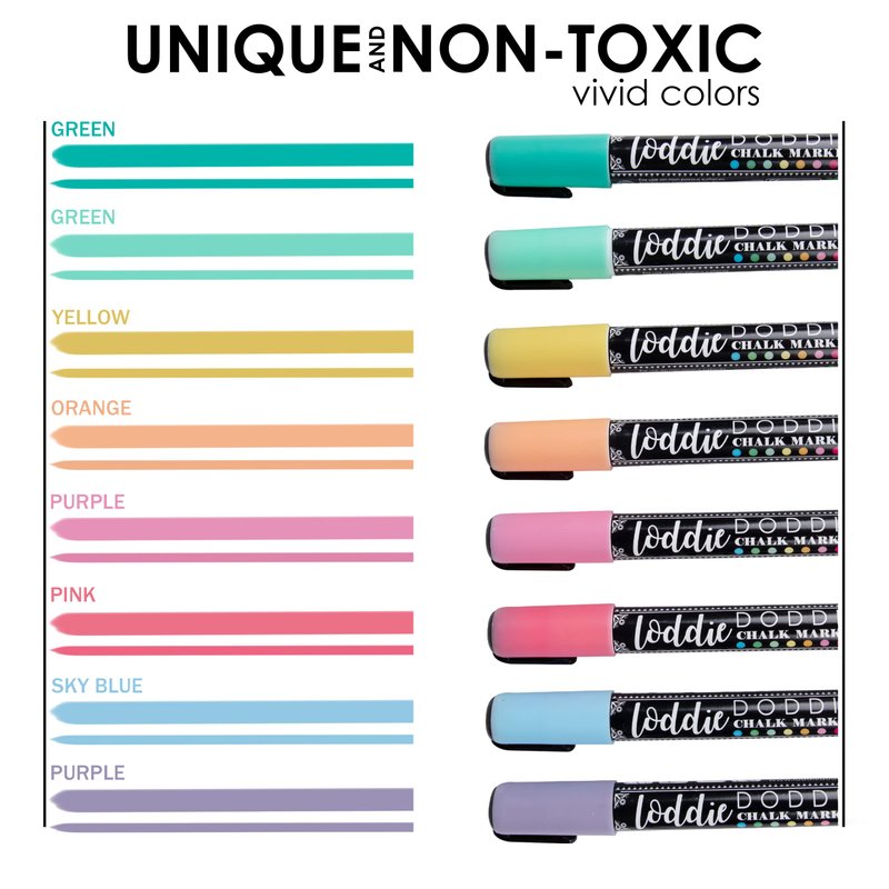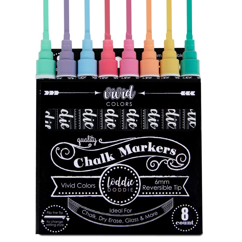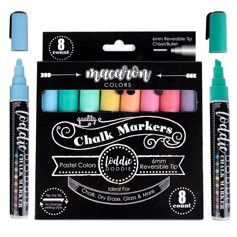 Loddie Doddie Liquid Chalk Markers for Chalkboard - 6mm Reversible Chisel and Bullet Tips, Chalkboard Markers Erasable, Macaron Pastel Chalk Pens 8 Count