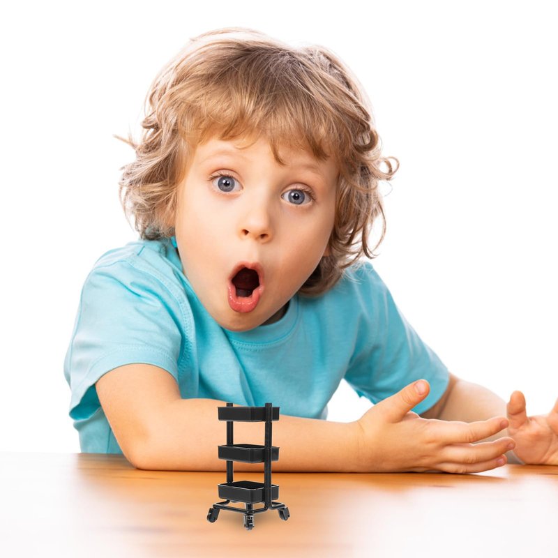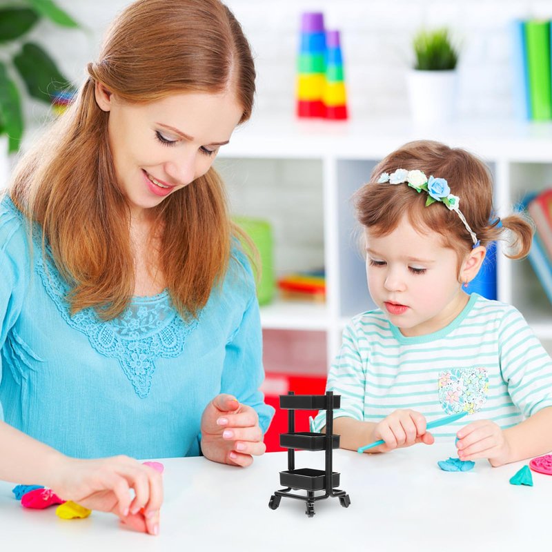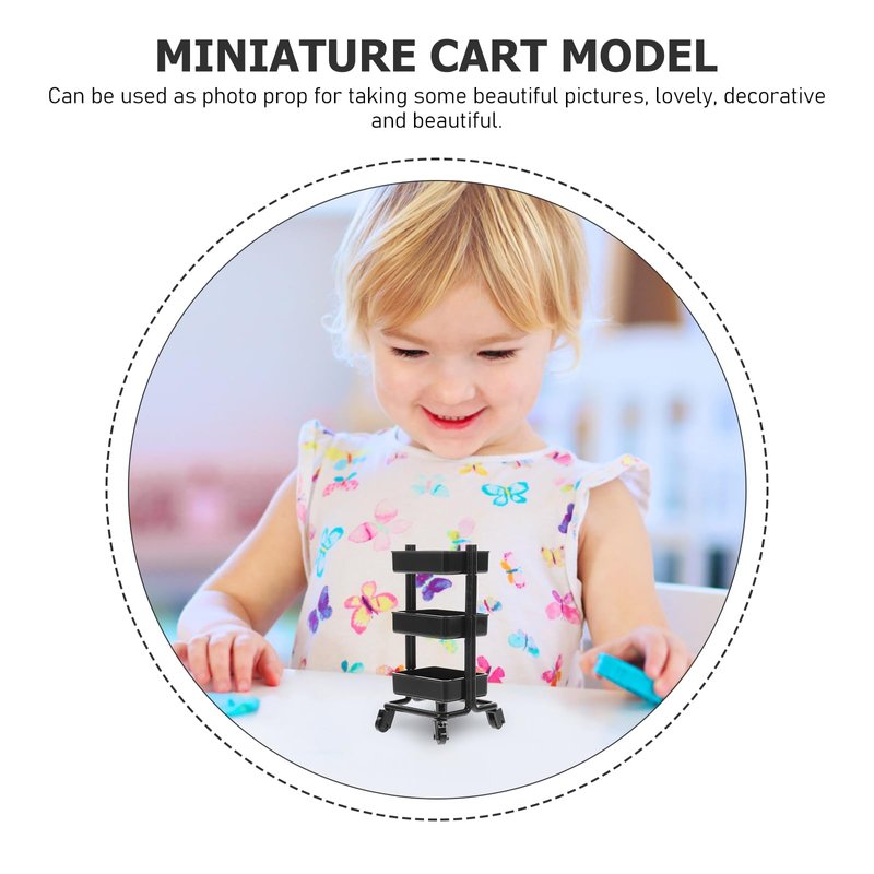 LOGOFUN Doll House Cart Miniature Cart Model Tiny Rolling Cart Toy Mini 3-Layer Storage Trolley with Wheels for Dollhouse Accessories - Black