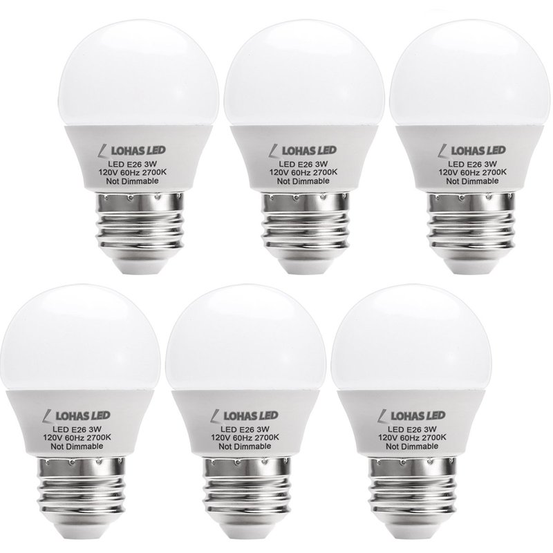 LOHAS 3W LED Light Bulb, G14 LED 25W Equivalent Light, E26 Medium Base Warm White 2700K LED Tiny Bulb, 120V Small Night Light Bulbs for Bedroom Ceiling Fan Table Lamp Lighting, Not-Dim 6 Pack