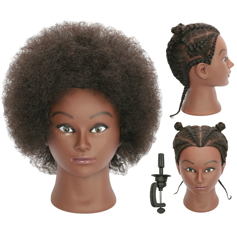 - 🌹Don’t use hot water when washing hair for the first time,use hair dryer to blow dry from bottom to top at moderate temperature each time,the curl of the mannequin heads hair will not disappear after washing,and it will stay well;this afro hair style is come from little ring curls that permed,after washing,it is more like styles,can practice straightening coloring cutting styling braiding setting and blow waving;