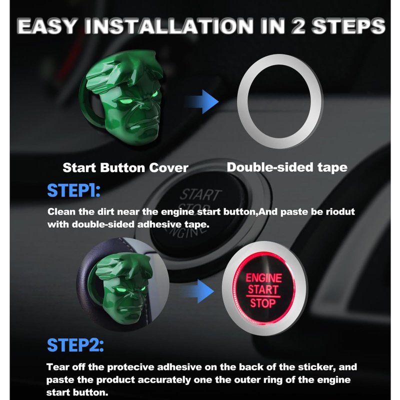 LOKEKE Car Push Start Stop Button Cover, Vehicle DIY Engine Ignition Push Start Button Decorations, Motocycle Ignition Key Switch Protective Cover(Hulk Green)