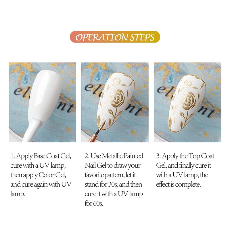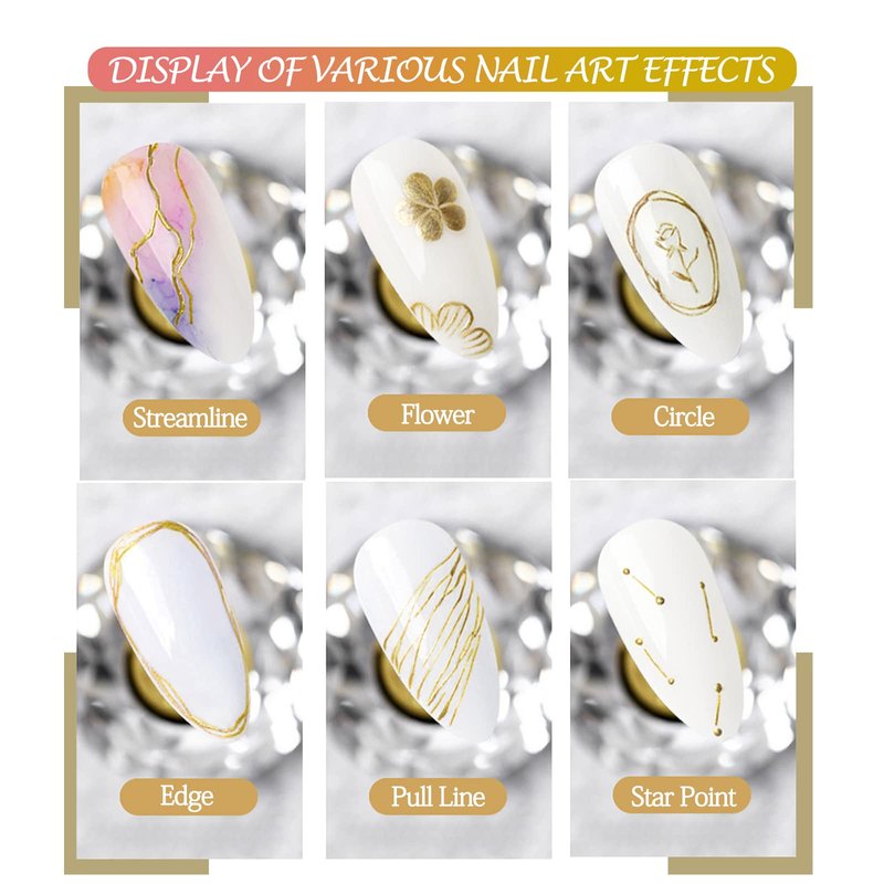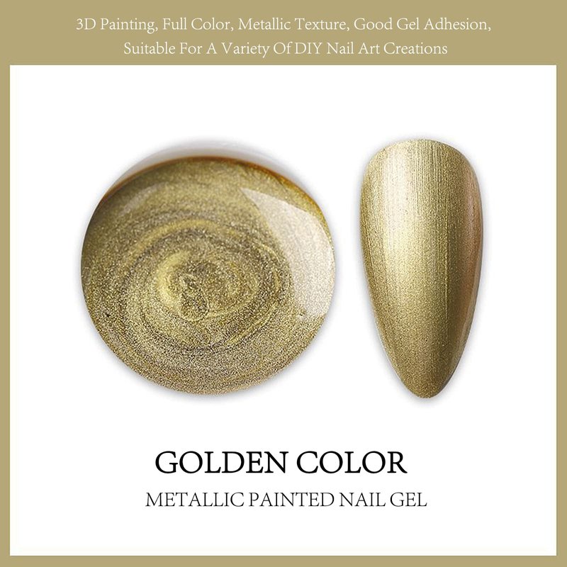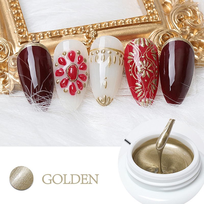 - 【METALLIC NAIL ART GEL PAINT GEL】- The net content of this gold gel nail polish/ metallic nail art gel paint gel is 5g, which can meet your daily DIY design of various nail decoration patterns: pull lines, flowers, stars, circles, nail art reliefs, etc.
