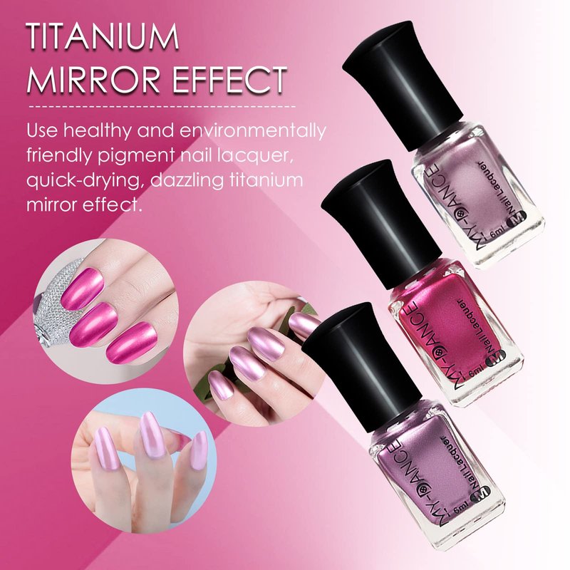 1. Each set includes 3 different colors of mirror metallic nail polish, bright and shiny finish, mirror shine effect, perfect for noble and stylish women.