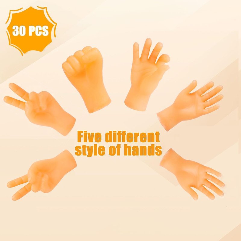 - Value Pack: You will get 30pcs little hands, 5 left hands, 5 right hands, 5 fist, 5 finger hand for victory, 5 OK finger hand and 5 middle finger gesture hand. You can play with your friends, family or pets with these fun little hands
