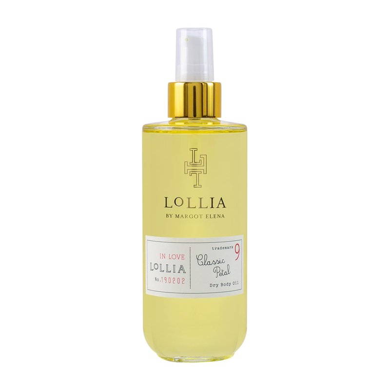 - DRY BODY OIL FOR WOMEN: Lush and gentle, Lollia’s In Love Dry Body Oil is a moisture-rich pick-me-up. The body oil spray is delightfully fragranced with Classic Petals of infusions of Apple Blossom kissed by Jasmine upon the breath of Living Rose.