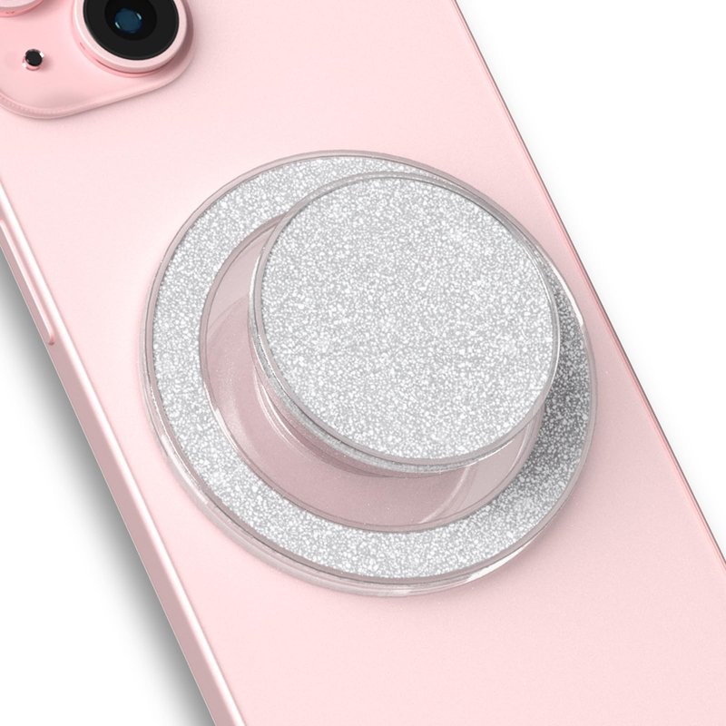 LOLLWIDY Glitter Phone Grip Compatible with MagSafe, Detachable Clear Phone Grip Holder Collapsible, Compatible with Kindle, Smartphone Tablet Cell Phone Accessory (Magnetic Type, Glitter Silver)