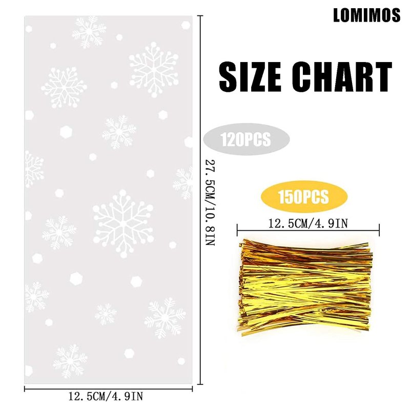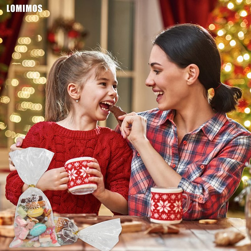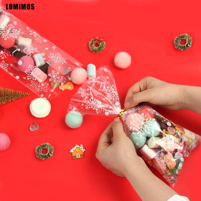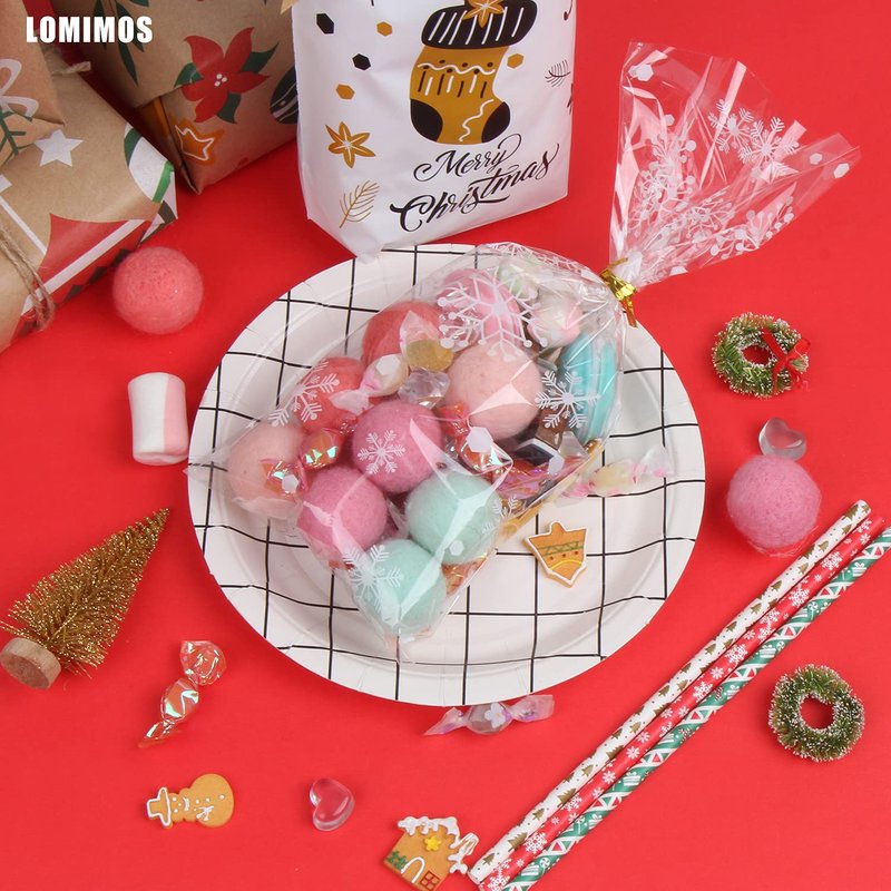 LOMIMOS Christmas Cellophane Treat Bags,Clear Plastic Candy Cookie Packing Bags with Twist Ties for Party,120pcs