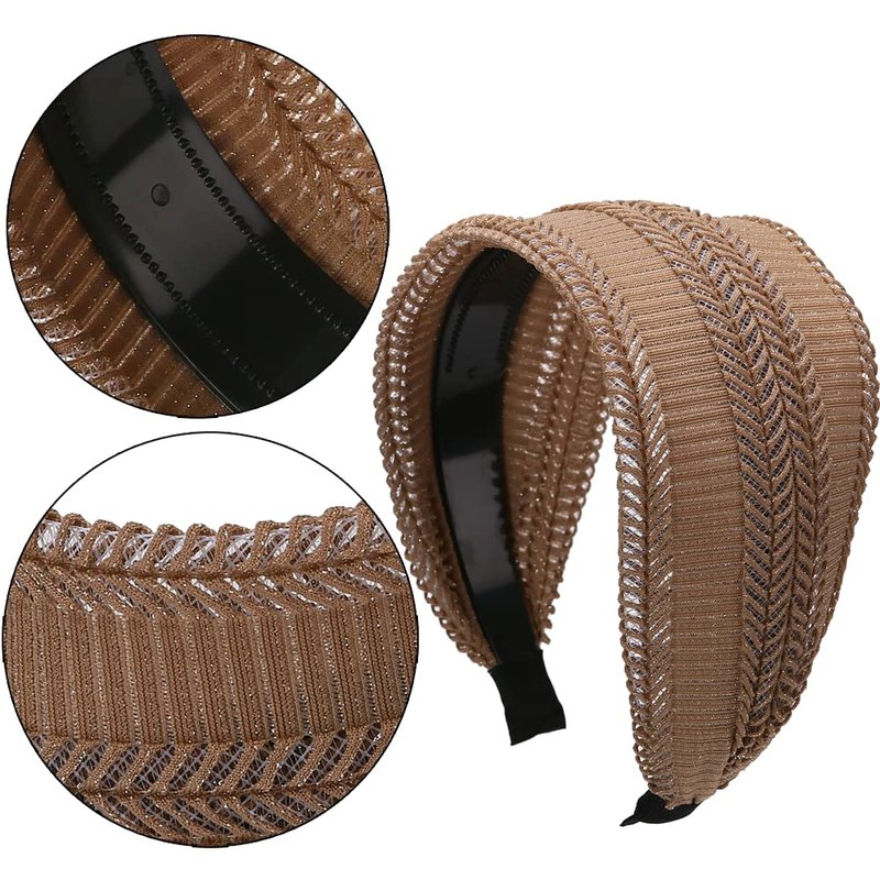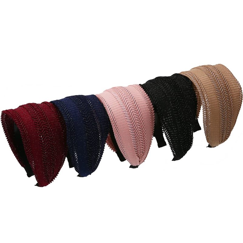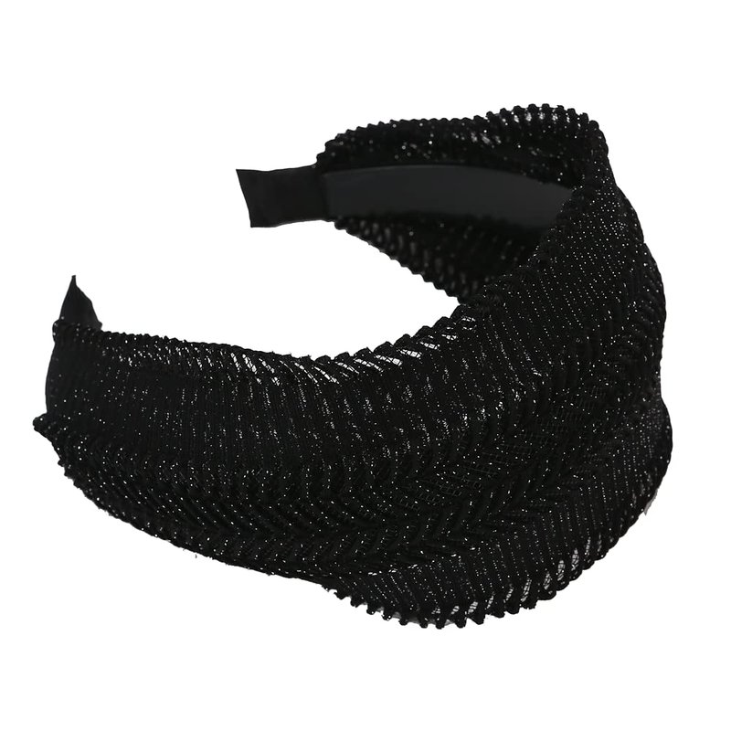 LONEEDY 5 Pack Glitter Wide Headbands for Women Hard Hair Band Velvet Fabric with Teeth for Girls Hair Accessories (5pcs Hollow-out Mix Color)