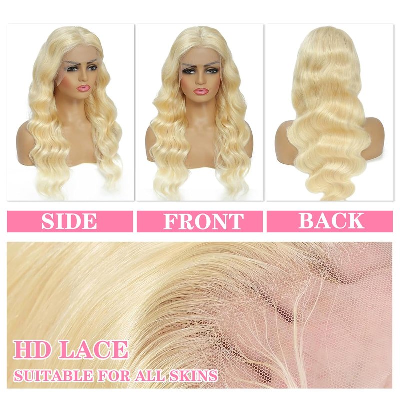 - Blonde Lace Front Wigs Human Hair: 613 hd lace frontal wig is invisible, soft, breathable and comfortable. can be dyed, easy to install, The 613 13x6 lace front wig human hair can be dyed, permed, bleached and restyled as your needs.