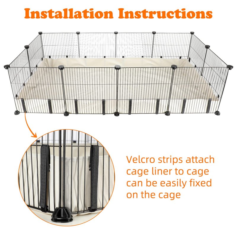 - 【Easy to Clean】: That Guinea pig cage bottom liner is easy to wipe and clean, and can be reusable. When cleaning locally, you can wipe gently with a rag ,and for overall cleaning, you just detach the Velcro strap , take out the whole bottom and dump the poop out. And can be clean well by cold water. It is recommended not to use machine washing.